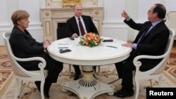 План мирного урегулирования конфликта на Украине был подготовлен в начале февраля 2015 года. 5 февраля Олланд и Меркель представили его Петру Порошенко, а на следующий день — Владимиру Путину.