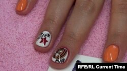 "Здесь "Девятое мая" напишем, а здесь нарисуем георгиевскую ленточку со звездочкой", – показывает свое искусство московская маникюрщица. Накануне Дня Победы, именно такой дизайн ногтей особенно популярен.