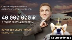 Глава Фонда борьбы с коррупцией Алексей Навальный опубликовал на своем сайте расследование, согласно которому первый вице-премьер России Игорь Шувалов тратит 130 миллионов рублей в год на перелеты на частном самолете и еще 40 миллионов – на перевозку собак своей жены для их участия в зарубежных выставках.