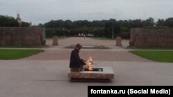 Полиция устанавливает личность мужчины, который жарил шашлыки над Вечным огнем на Марсовом поле в Петербурге.