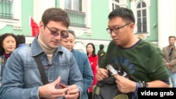 Один из таких нелегальных гидов показывает документ — разрешение на работу в Петергофе. По его словам, лицензии, чтобы рассказывать об истории Эрмитажа, у него нет, как нет и аккредитации, которую получают все российские профессионалы.