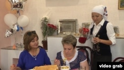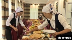 "Все гости будут расположены здесь. Махабат, сейчас приедет заказчица, обсудим всю программу. Потом будут дальнейшие указания", – инструктирует она сотрудниц. Когда гости садятся за стол, "келин" подходят, накладывают им салаты, спрашивают кому принести чай, кому другие напитки.