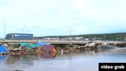 Мост через реку Ия – уже как символ этого наводнения: именно к нему прибило дома и другие постройки, унесенные потоком воды. Неподалеку от него находится пункт раздачи гуманитарной помощи для других жителей Тулуна, пострадавших от стихии. Светлана Семенова здесь – одна из волонтеров, раздающих нуждающимся еду и другие предметы первой необходимости. В ходу хлеб, яйца, чай, консервы, печенье и лапша быстрого приготовления.