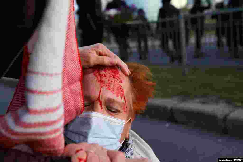 К вечеру, когда у стелы "Минск – город герой" собрались около пяти тысяч человек, силовики стали действовать крайне жестко: применялись водометы с оранжевой жидкостью вместо воды, дубинки, электрошокеры, слезоточивый газ. Есть раненые