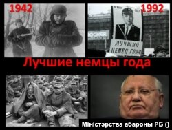 Далее авторы урока рассказывают детям, как "бандеровцы" убили 100 тысяч поляков во время Волынской бойни – с подробным описанием жестоких методов убийства. Среди них, например, вспарывание детских животов, сдирание кожи и обливание тела горячей водой, прибивание детей гвоздями к деревьям и десятки других. Далее в презентации фотография Михаила Горбачева соседствует с немецкими солдатами времен Второй мировой войны и надписью "Лучшие немцы":