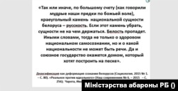 Есть слайд, на котором говорится, что во время войны польские националисты играли в футбол головами убитых евреев. Среди других материалов урока – цитата о том, что "сущность белоруса – русскость".